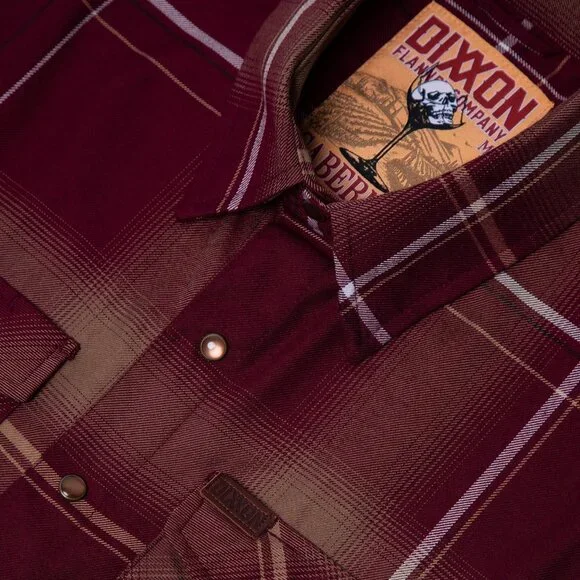 DIXXON Flannel CABERNET Men's Limited Edition Flannel Shirt - LNEW, In Original PackageFor the bottomless bottle you'll need to spend the evening with the in-laws, the Cabernet Flannel features an allover red, brown, white, peach, and black plaid patterned that offers a clean and classic design, while the signature D-Tech™ blend provides the comfort of soft to the touch flannel. Constructed to be breathable for the performance you demand, yet durable for the rugged lifestyle you live.Men’s red, brown, white, peach, and black plaid patterned flannel shirtFull snap button closureButton sleeve cuffsDual snap button flap chest pockets with utility slot for pens, sunglasses, etc.Brown Dixxon brand tag on the left chest pocketMachine wash cold with like colorsHang to dry or tumble dry on lowDo not ironSignature D-Tech™ polyester blendImportedRuns big, Refer to size chartRelaxed fitAll sales are final, no returns!